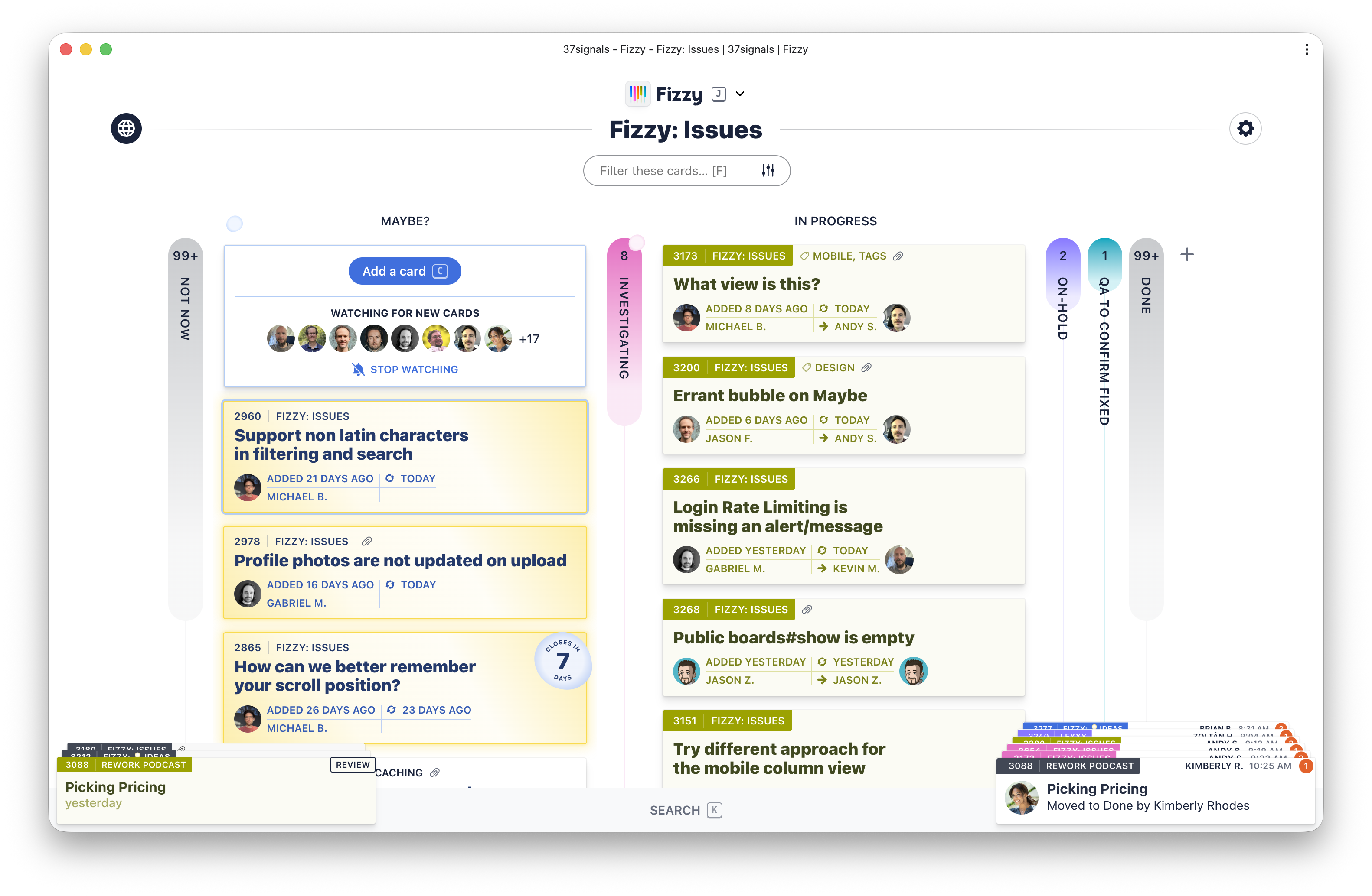 Interesting task/ project statuses referenced in Jason Fried’s launch of Fizzy, a streamlined Kanban task/ project manager: